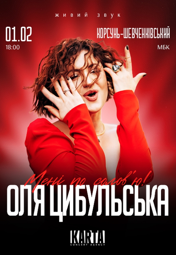 На тебе чекає вечір справжніх емоцій — улюблені пісні, щирий гумор, живе спілкування та шалена енергетика Олі Цибульської.